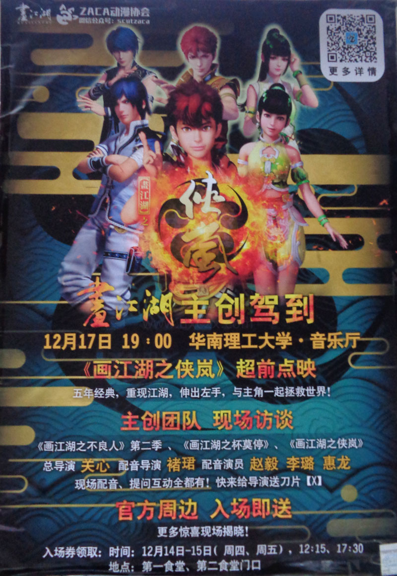 ZACA动漫协会《画江湖之侠岚》超前点映 12月17日19:00音乐厅 画江湖主创驾到 | ||||||