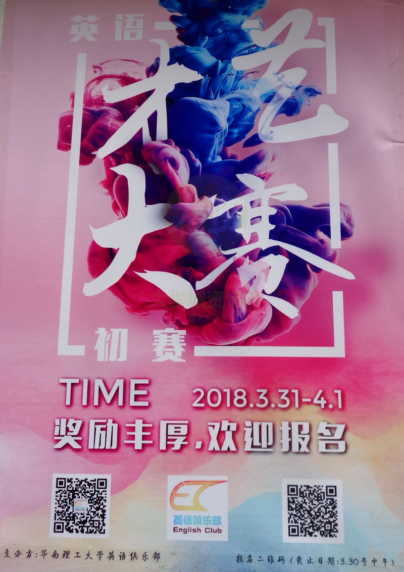 英语才艺大赛初赛 2018.3.31-4.1 奖励丰厚,欢迎报名 | ||||||