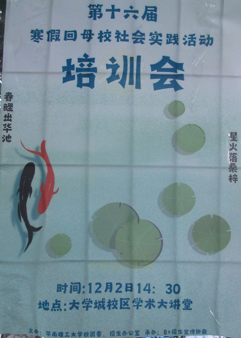 华工-第十六届寒假回母校社会实践活动培训会 12.02周六下午14点30 学术大讲堂 | ||||||