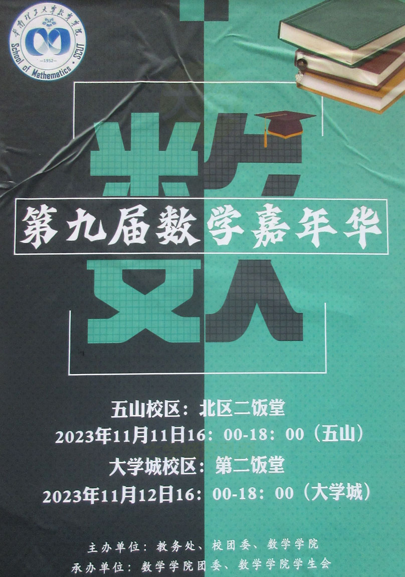 华工-第九届数学嘉年华 2023.11.12周日下午16点-18点 生活区二饭