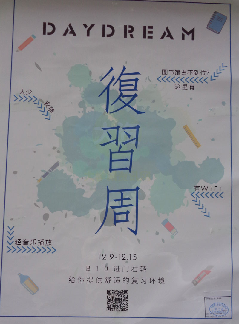 DAYDREAM复习周 12.9-12.15 B10进门右转 给你提供舒适的复习环境