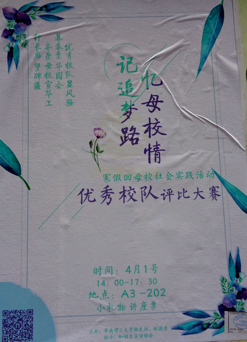 记追梦路忆母校情 寒假回母校社会实践活动优秀校队评比大赛 4月1号14:00-17:30 A3-20