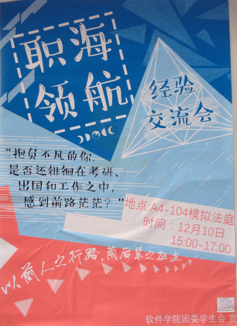 职海领航经验交流会 “抱负不凡的你,是否还徘徊在考研、出国和工作之中,感到前路茫茫?” | ||||||