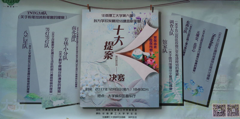 华工第六届“十大提案”决赛 12月9日(周六) 18点30分 音乐厅 | ||||||