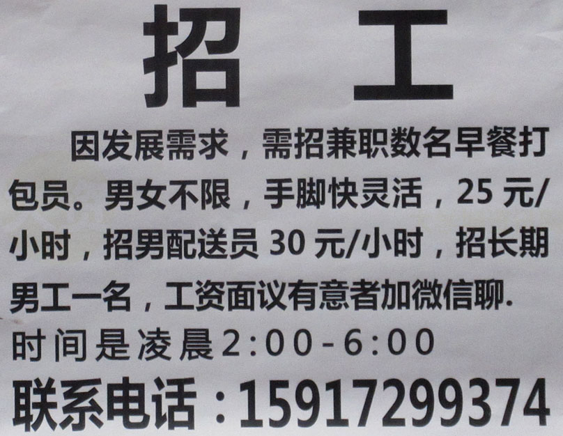 穗石·招兼职早餐打包员数名,25元1小时,招男配送员30元1小时,招长期男工一名,工资面议 |