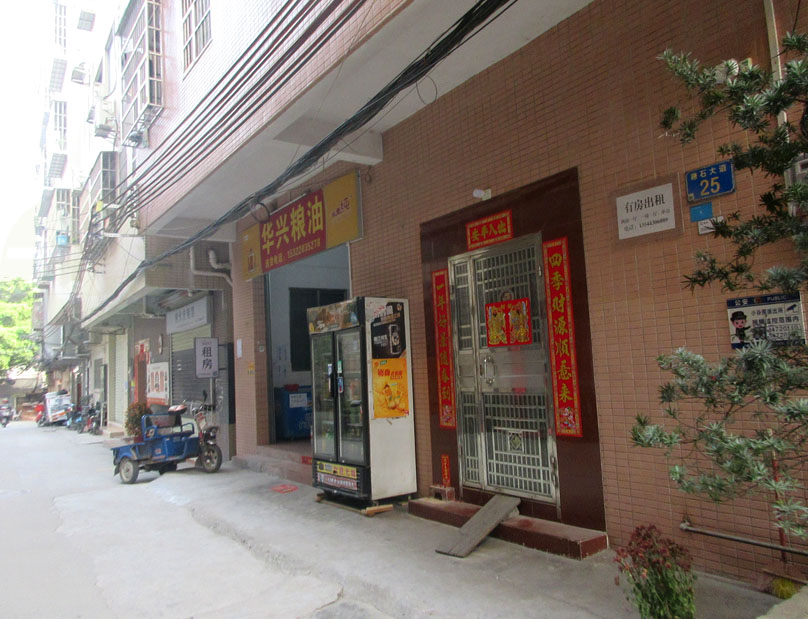 原先看到穗石市场入口对面的华兴粮油店似没开,原来是开到穗石大道北段中偏东这里内,具体是穗石大道25号一楼临街