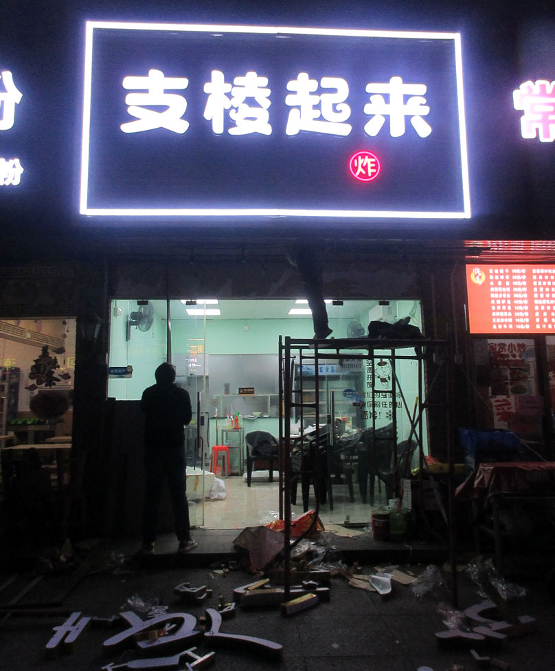 大利家超市西列南 原先的壹久小食坊店面好像正在改成叫支棱起来,看到有个炸字,是改做烧烤方面的吧 | ||||||