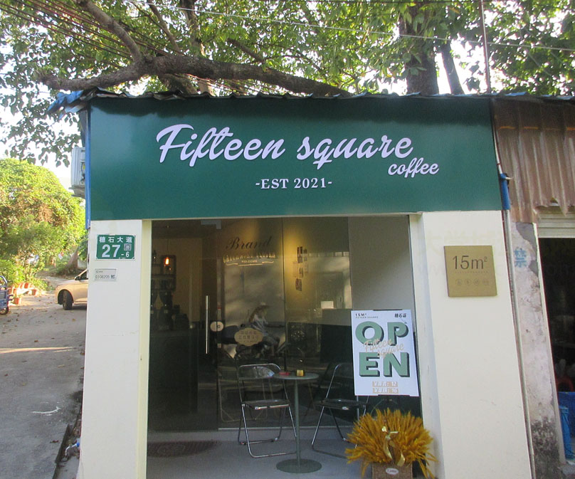 穗石大道东西向段&北段&中段 南列偏西 看到新开一家叫Fifteen Square 15㎡ 的咖啡店 美式12元 拿铁15元