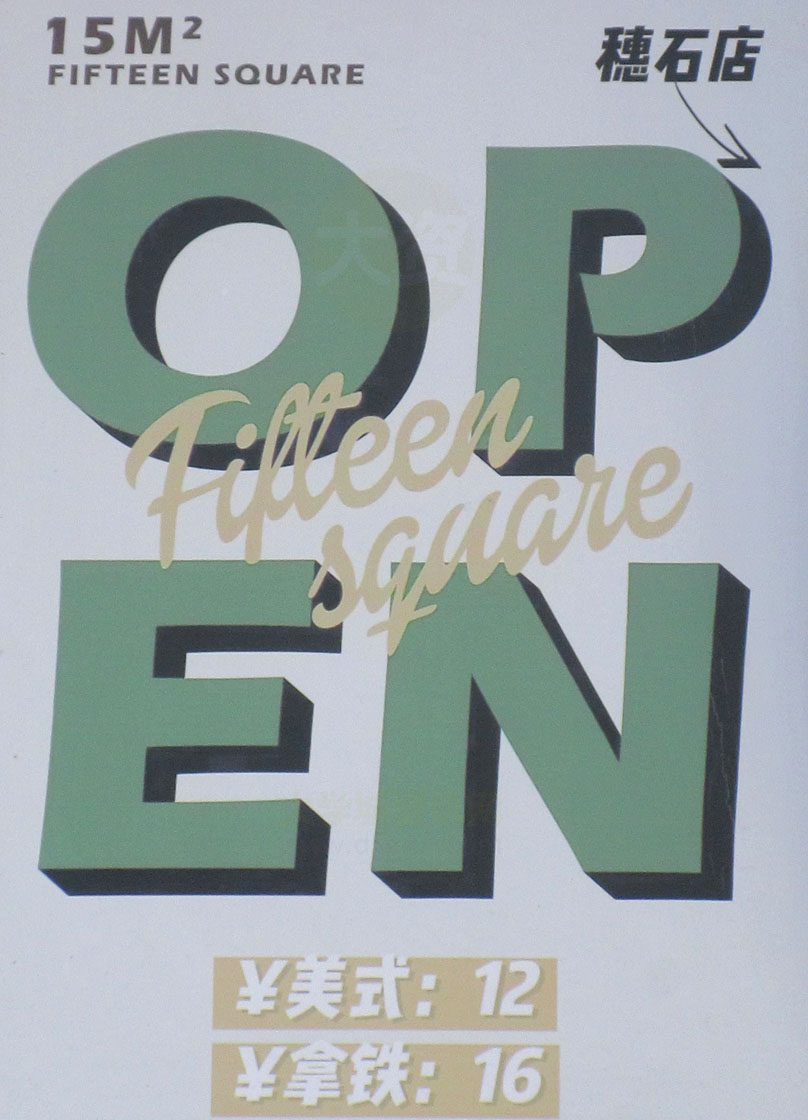 穗石大道东西向段&北段&中段 南列偏西 看到新开一家叫Fifteen Square 15㎡ 的咖啡店 美式12元 拿铁15元 | ||||||
