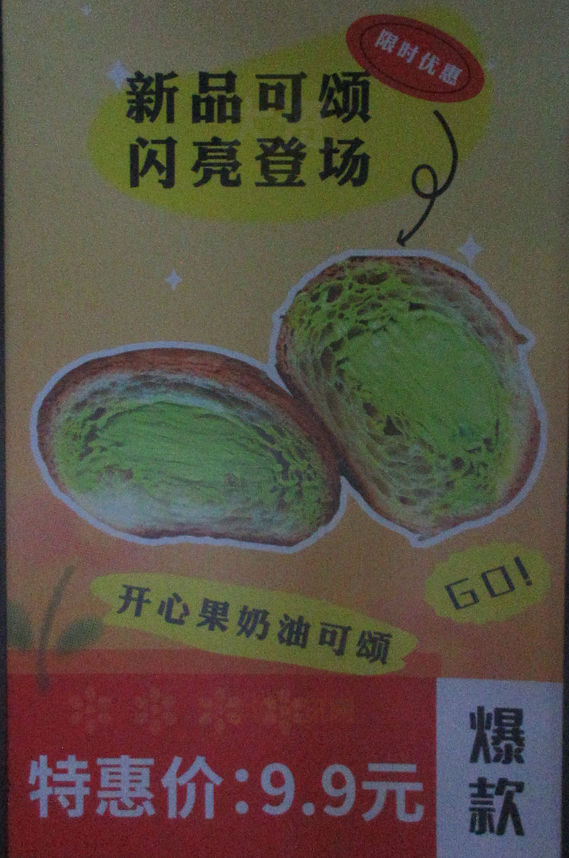 穗石-大利家超市南门旁&南列中 海豚烘焙面包店 新品-开心果奶油可颂特惠价9.9元 更多现点现做美样造型面包 早前搭配-贝果&碱水任选2个19.8元
