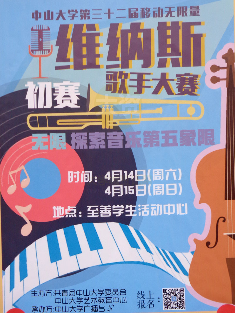 中山大学第三十二届移动无限量维纳斯歌手大赛初赛4月14/15日至善学活 | ||||||