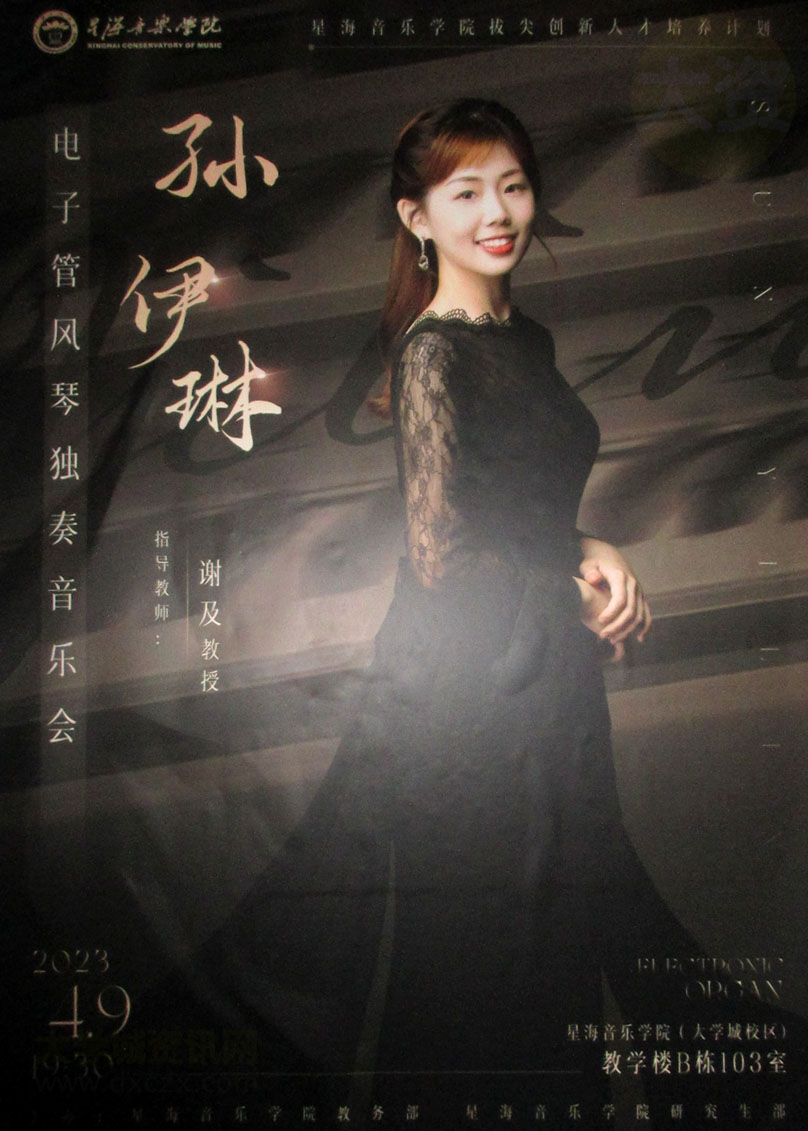 孙伊琳电子管风琴独奏音乐会 2023.04.09周日晚19点30 教学楼B栋103室 | ||||||