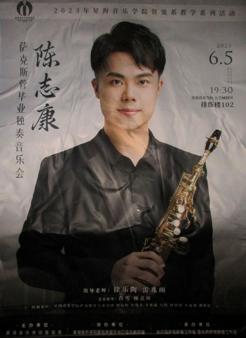 陈志康·萨克斯管毕业独奏音乐会 2023.06.05晚19点30 教学区排练楼102 |