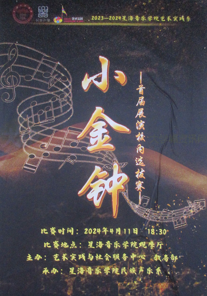 星海-小金钟--首届艺术展演校内选拔赛 2024.04.11周四晚18点30 教学区观摩厅 |