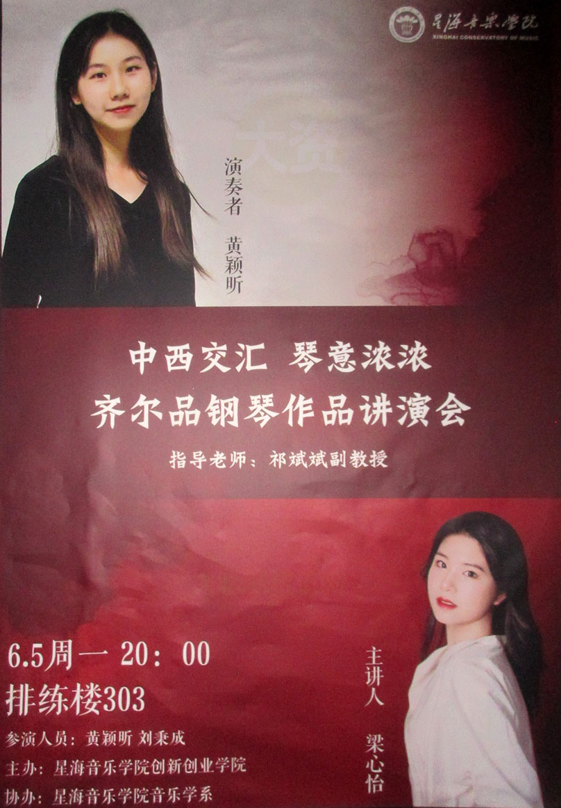 中西交汇 琴意浓浓 齐尔品钢琴作品讲演会 2023.6.5周一晚8点 教学区排练楼303 | ||||||