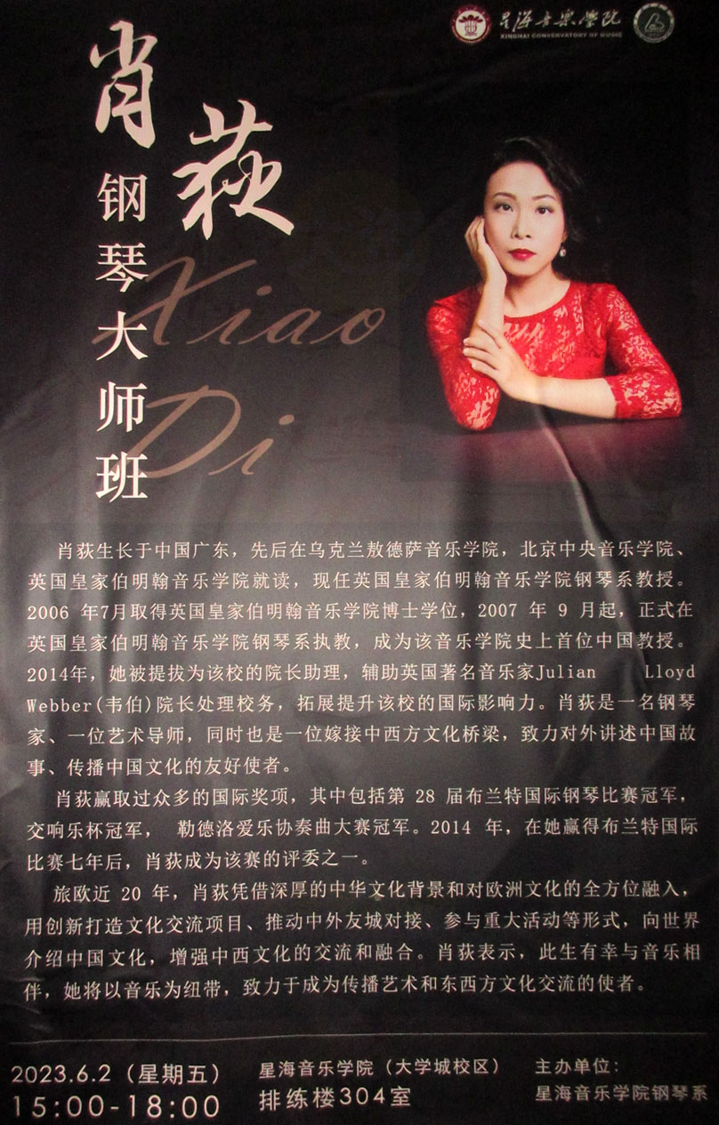 肖荻钢琴大师班 2023.06.02周五下午15点-18点 教学区排练楼304室 | ||||||