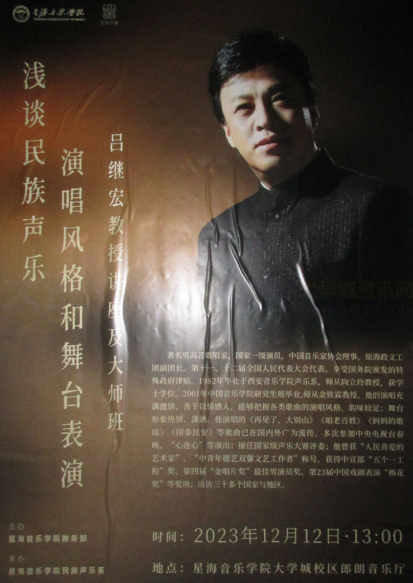 浅谈民族声乐演唱风格和舞台表演-吕继宏教授讲座及大师班 2023.12.12周二下午13点 教学区朗朗音乐厅 | ||||||