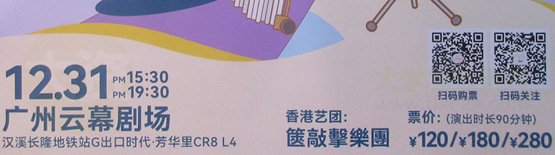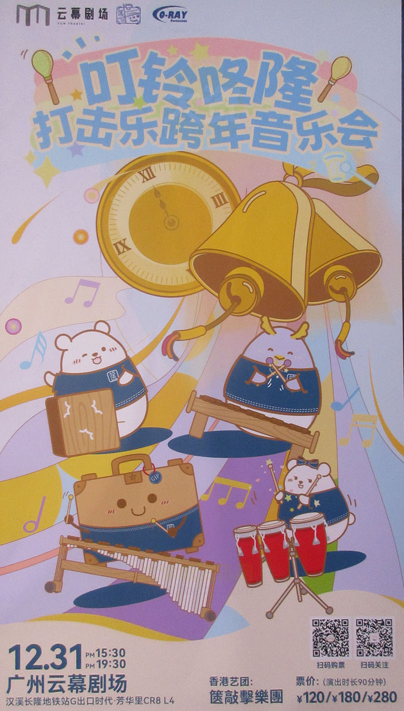 广州云幕剧场-叮呤咚隆打击乐跨年音乐会 12.31 15点30 19点30 番禺汉溪长隆地铁G出口-时代·芳华里CR8 L4 票价120-180-280 扫码购票