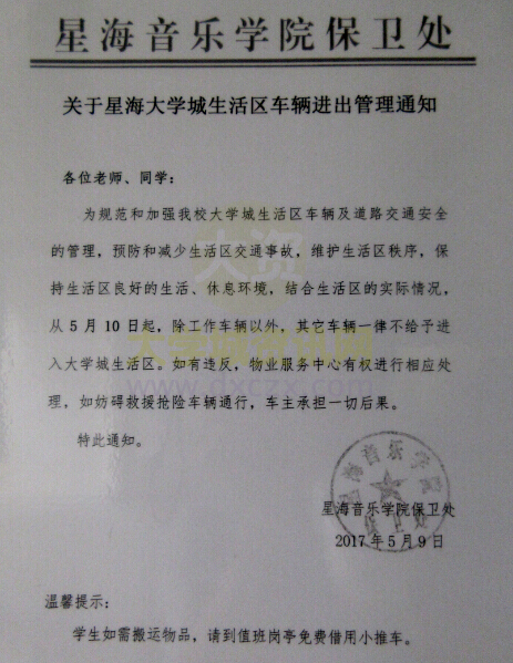 关于星海大学城生活区车辆进出管理通知 | ||||||
