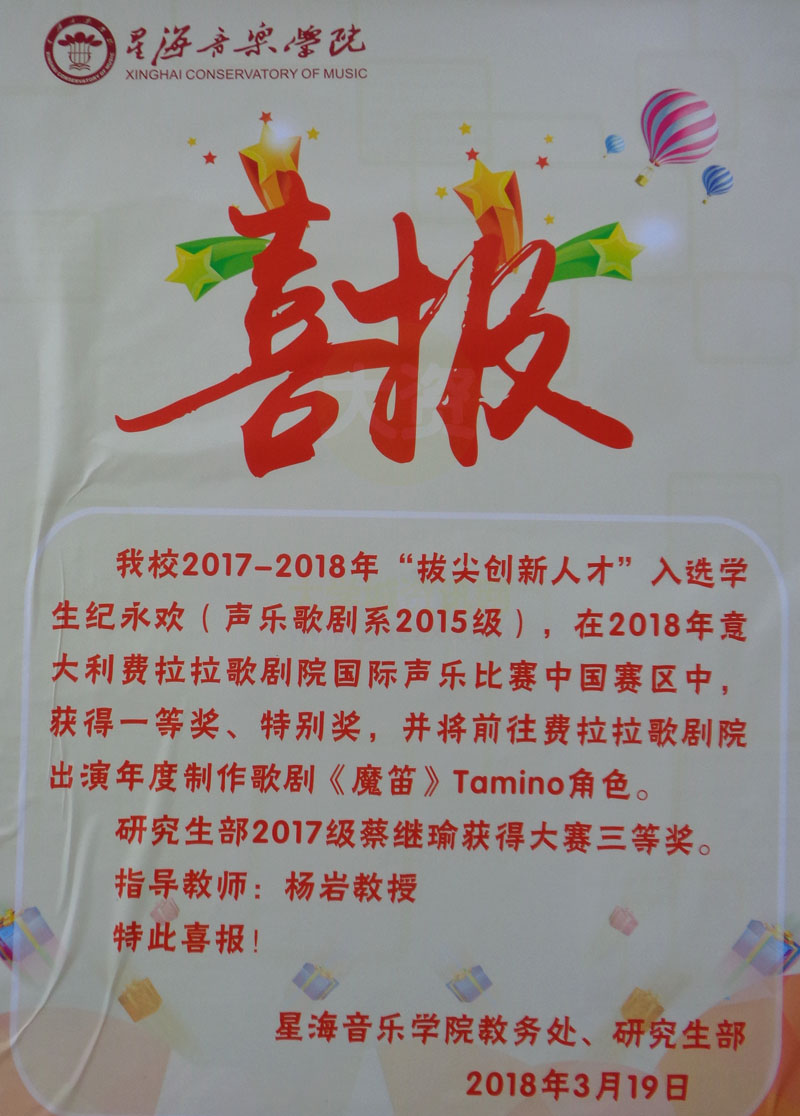 [喜报]星海音乐学院教务处、研究生部 2018年3月19日 | ||||||