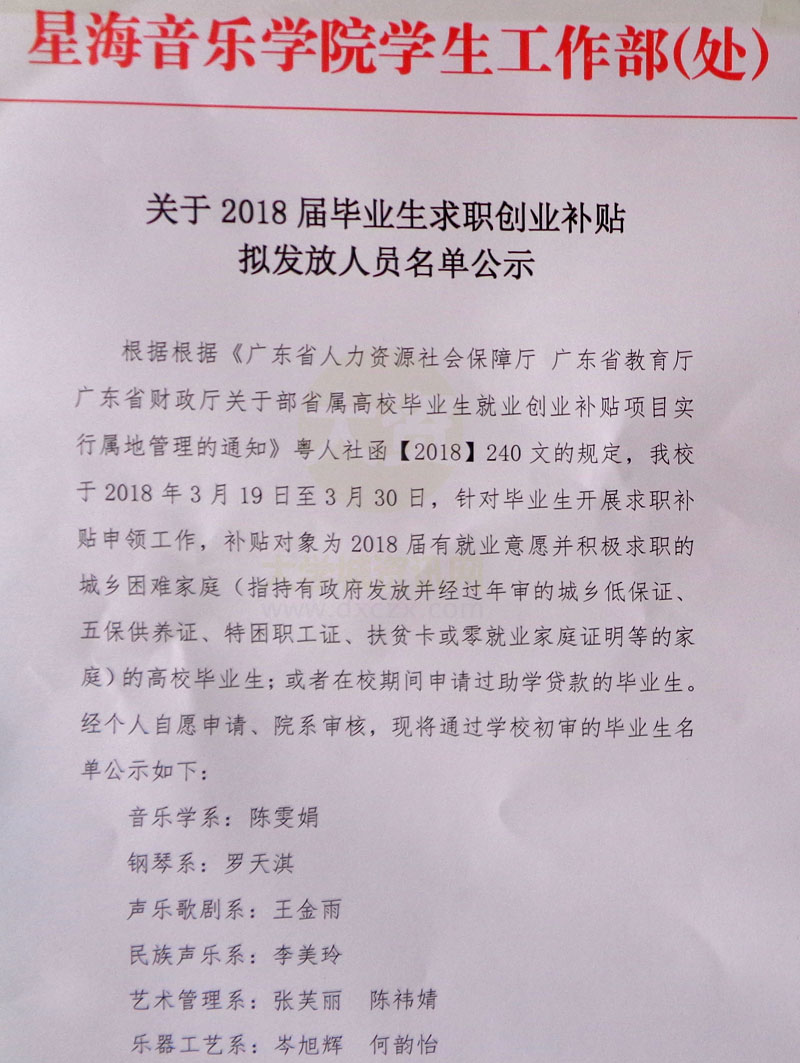 关于2018届毕业生求职创业补贴拟发放人员名单公示 | ||||||