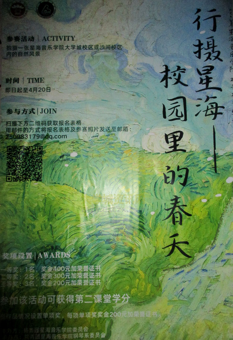 校园里的春天·星海校园风景摄影比赛 即日起至4月20日 参与方式-扫码获取报名表 奖项设置-一二三等奖,奖金+证书 还可获得第二课堂学分 | ||||||