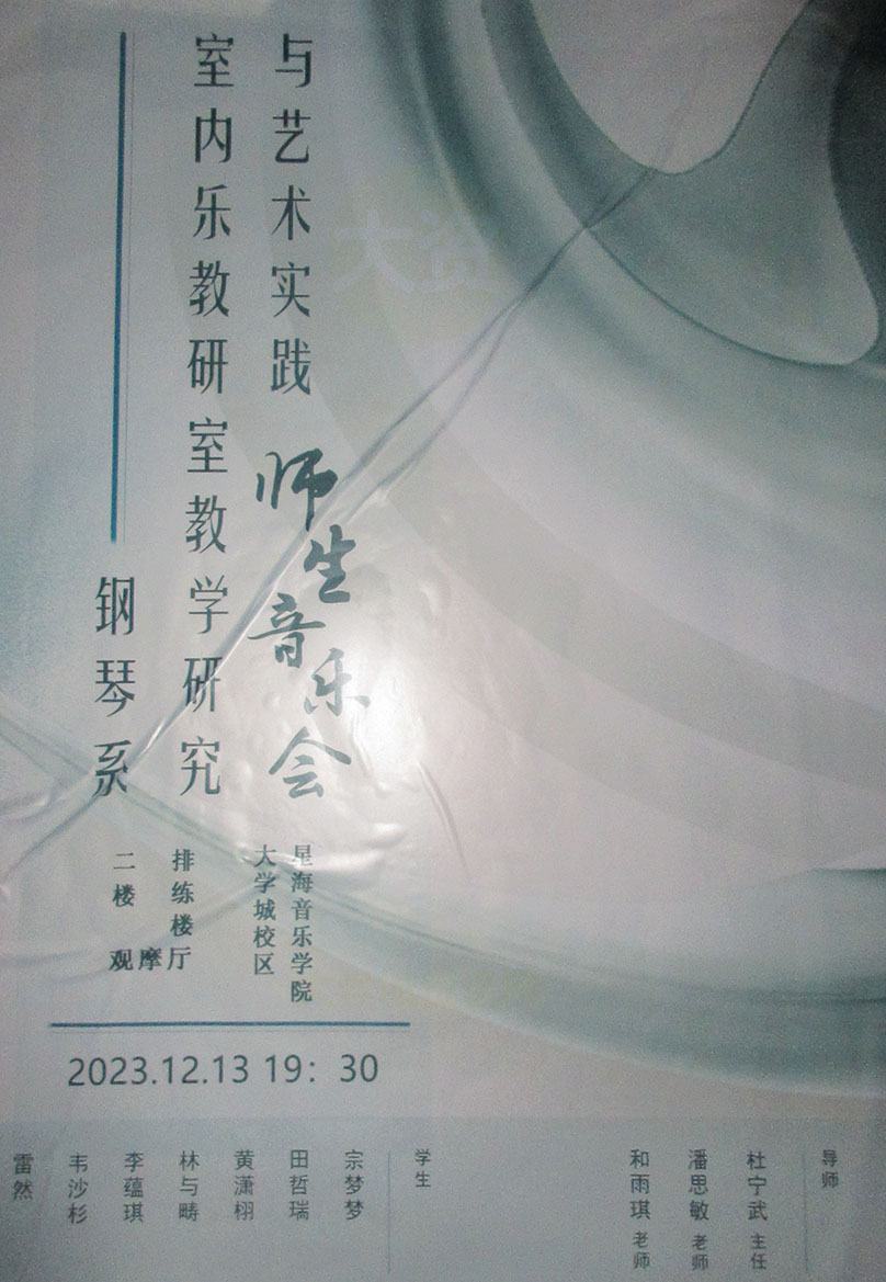 星海钢琴系-室内乐教研室教学研究与艺术实践师生音乐会 2023.12.13周三晚19点30 教学区排练楼观摩厅 | ||||||
