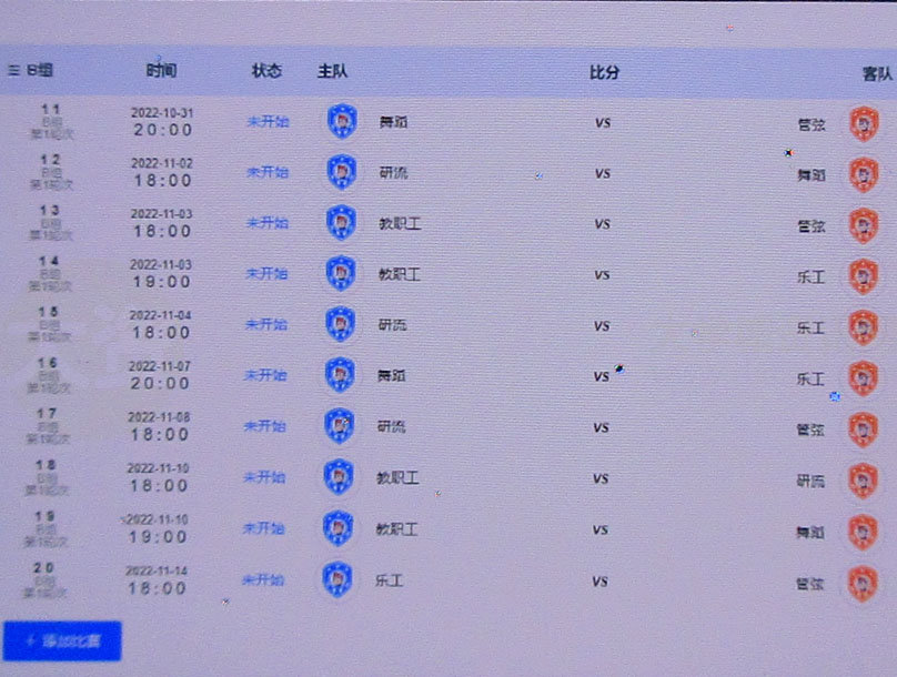 小组赛,从2022.10.31号开始,到2022.11.14号结束,晋级淘汰赛后续赛程,稍后更新