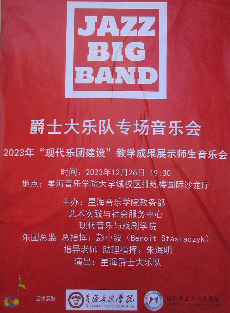 - 星海-爵士大乐队专场音乐会 2023年现代乐团建设教学成果展示师生音乐会 2023.12.26周二晚19点30 教学区排练楼国际沙龙厅