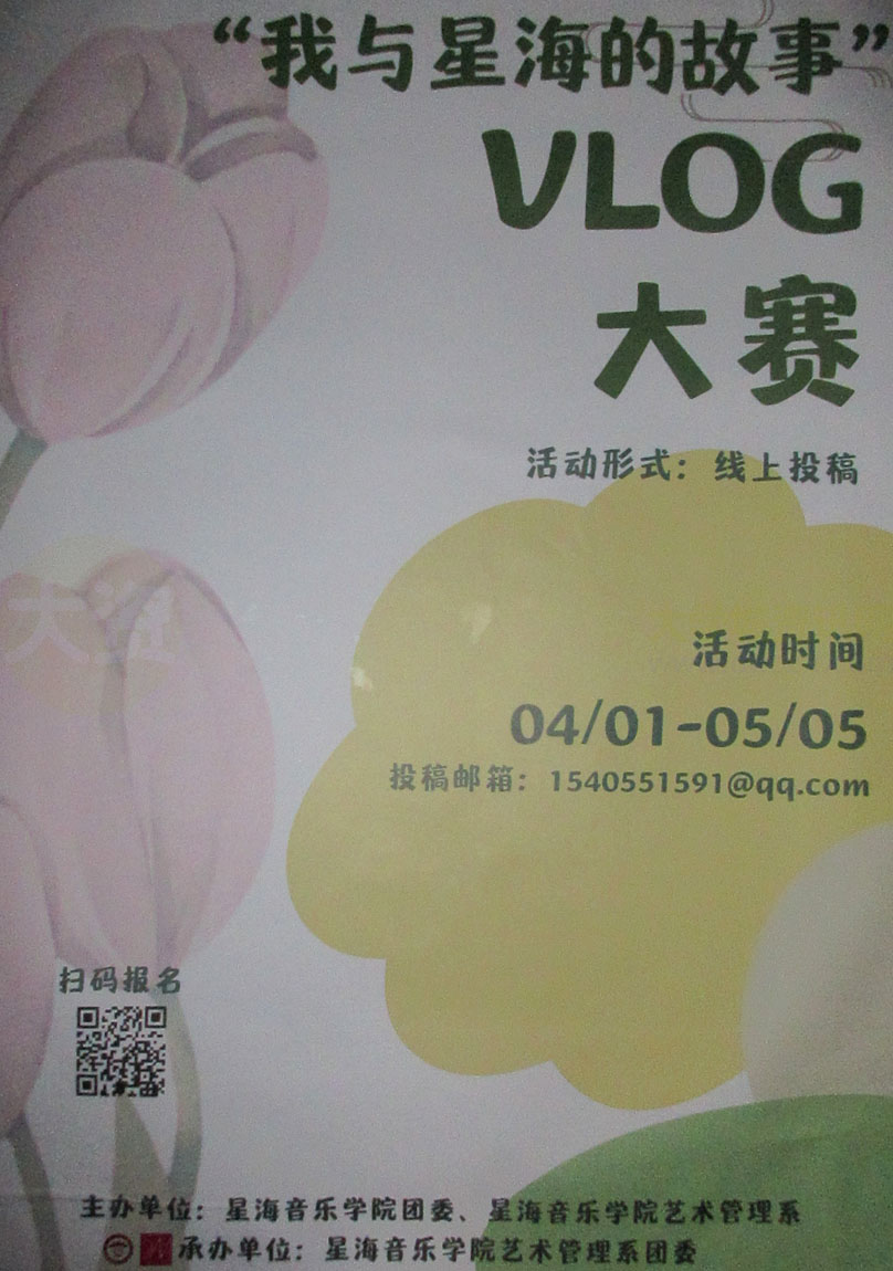 我与星海的故事主题VLOG大赛 活动时间4.1-5.5 活动形式-线上投稿 扫码报名 | ||||||