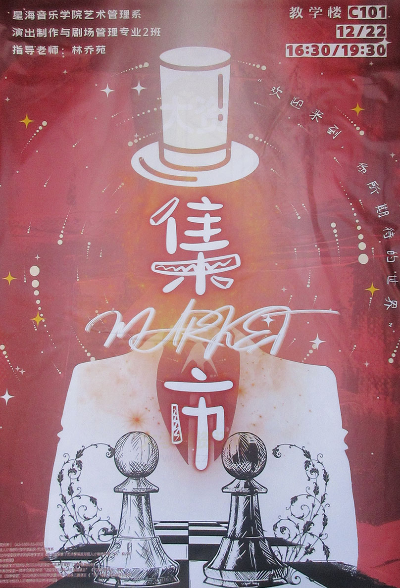 星海音乐学院艺术管理系·演出制作与剧场管理专业2班-模拟集市 教学楼C101 12.22 16点30-19点30 |