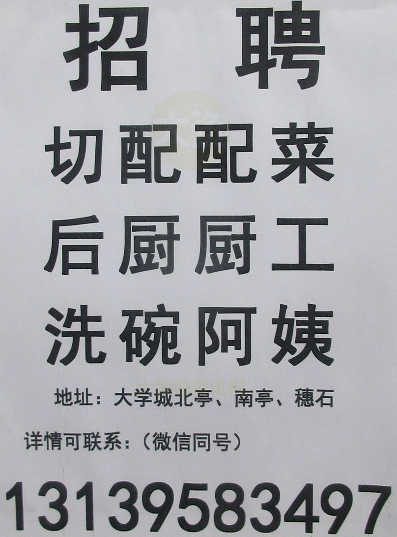 大学城北亭南亭穗石餐饮店招聘 切配配菜 后厨厨工 洗碗阿姨 微电13139583497